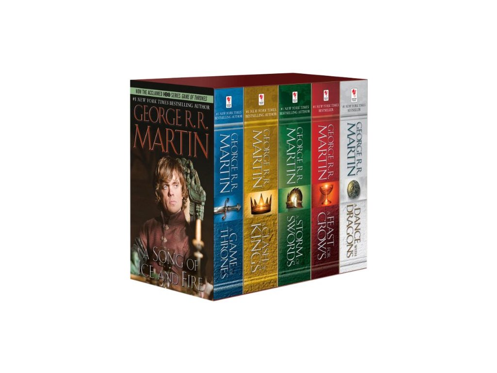 The perfect gift for fans of HBO's Game of Thrones--a boxed set featuring the first five novels! An immersive entertainment experience unlike any other, A Song of Ice and Fire has earned George R. R. Martin--dubbed "the American Tolkien" by Time magazine--international acclaim and millions of loyal readers. Now here is the entire monumental cycle: A GAME OF THRONES A CLASH OF KINGS A STORM OF SWORDS A FEAST FOR CROWS A DANCE WITH DRAGONS "One of the best series in the history of fantasy."--Los Angeles Times Winter is coming. Such is the stern motto of House Stark, the northernmost of the fiefdoms that owe allegiance to King Robert Baratheon in far-off King's Landing. There Eddard Stark of Winterfell rules in Robert's name. There his family dwells in peace and comfort: his proud wife, Catelyn; his sons Robb, Brandon, and Rickon; his daughters Sansa and Arya; and his bastard son, Jon Snow. Far to the north, behind the towering Wall, lie savage Wildings and worse--unnatural things relegated to myth during the centuries-long summer, but proving all too real and all too deadly in the turning of the season. Yet a more immediate threat lurks to the south, where Jon Arryn, the Hand of the King, has died under mysterious circumstances. Now Robert is riding north to Winterfell, bringing his queen, the lovely but cold Cersei, his son, the cruel, vainglorious Prince Joffrey, and the queen's brothers Jaime and Tyrion of the powerful and wealthy House Lannister--the first a swordsman without equal, the second a dwarf whose stunted stature belies a brilliant mind. All are heading for Winterfell and a fateful encounter that will change the course of kingdoms. Meanwhile, across the Narrow Sea, Prince Viserys, heir of the fallen House Targaryen, which once ruled all of Westeros, schemes to reclaim the throne with an army of barbarian Dothraki--whose loyalty he will purchase in the only coin left to him: his beautiful yet innocent sister, Daenerys. "Long live George Martin . . . a literary dervish, enthralled by complicated characters and vivid language, and bursting with the wild vision of the very best tale tellers."--The New York TimesDodatočné parametre