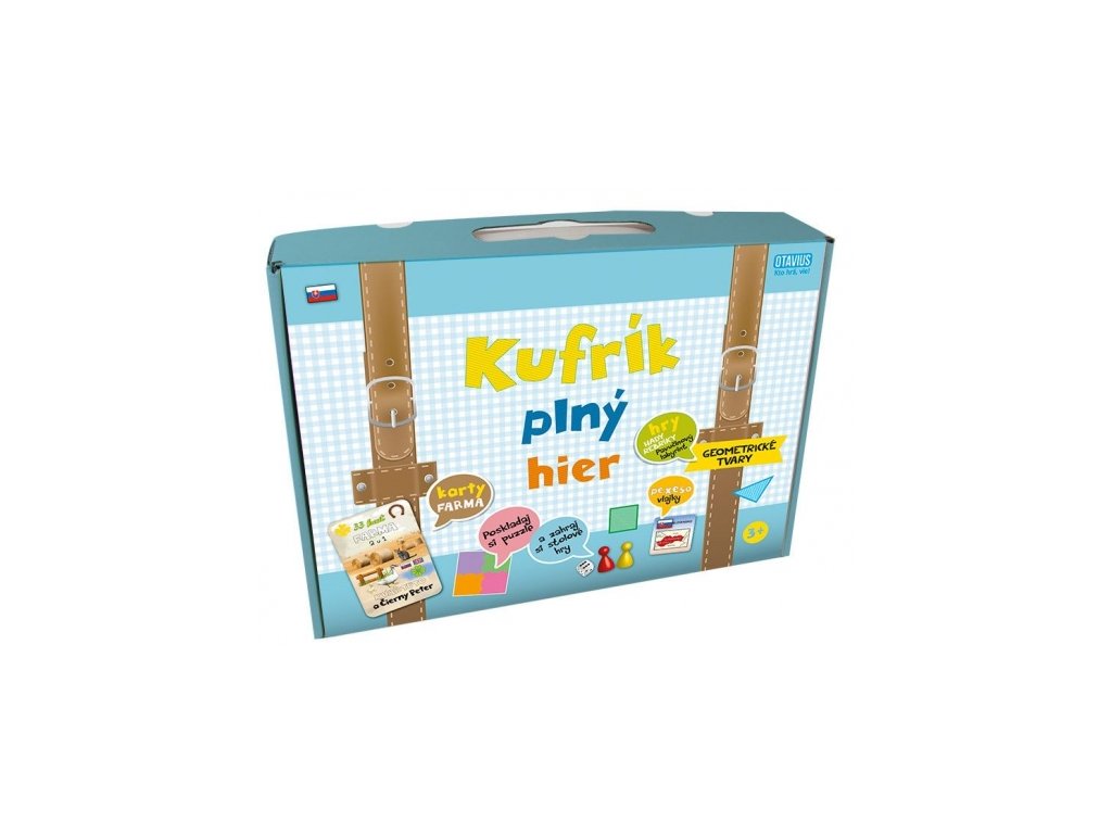 V kufríku plnom hier si svoje hry nájdu deti od 3 do 10 rokov. Pre menšie deti sú určené najmä dva druhy puzzle: dlhé a štvorcové. Po zložení štvorcových puzzle si môžu zahrať hry: Hady a rebríky, Pavučinový labyrint a Geometrické tvary. Dlhé puzzle treba zas poskladať s logickou postupnosťou.Karty Farma umožnia deťom spoznať zvieratká na farme v hrách Čierny Peter a Kvarteto, ktoré môžu hrať rôznym spôsobom a dokonca naučiť sa ich pomenovanie v angličtine. Kufrík obsahuje aj pexeso VLAJKY.