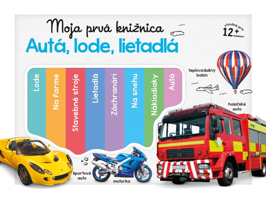 Moja prvá knižnica: Autá, lode, lietadlá obsahuje osem leporel s pútavými obrázkami dopravných prostriedkov a stavebných strojov. Deti sa hravou formou zoznámia so zaujímavými vozidlami. Poznávaním obrázkov a ich pomenovávaním si budú rozvíjať slovnú zásobu.Dodatočné parametre