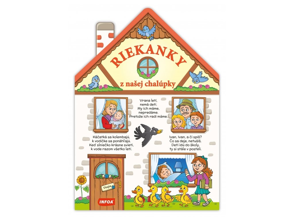 Veľké harmonikové leporelo plné veselých zvieratiek a postavičiek na obrázkoch so známymi ľudovými riekankami. Knižku je navyše možné poskladať do tvaru domčeka na hranie alebo použiť ako dekoráciu do detskej izbičky.Dodatočné parametre