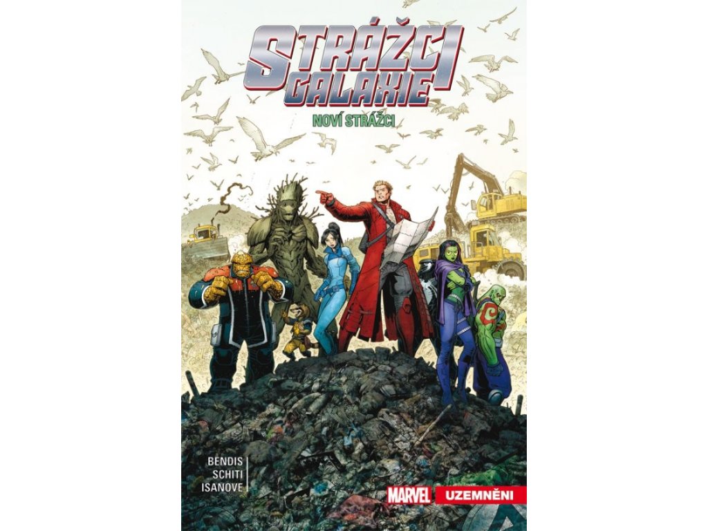 Strážci galaxie byli UZEMNĚNI! Kosmem křižující superhrdinové uvízli – ze všech možných míst zrovna na Zemi! A aby to bylo ještě horší, nejsou už ani tak docela týmem. Co by měl takový vesmířan jako Peter Quill dělat? Zatímco Groot prozkoumává pozemské parky, Angela řeší své dluhy z minulosti. Gamora, nejnebezpečnější žena galaxie, se mezitím stane nejnebezpečnějším cílem S.H.I.E.L.D.u – jenže ona se nezastaví, dokud se nedostane k Thanosovi! A když už je řeč o tom fialovém magorovi – mohl by být šílený Titán opravdu tím jediným, kdo dokáže dát tenhle tým opět dohromady? Brian Michael Bendis zakončuje své působení u Strážců galaxie ve velkém stylu! V této knize najdete sešity Guardians of the Galaxy (2015) č. 15–19 z pera Briana Michaela Bendise, na kterých se kresebně podíleli Valerio Schiti, Richard Isanove a další.Dodatočné parametre