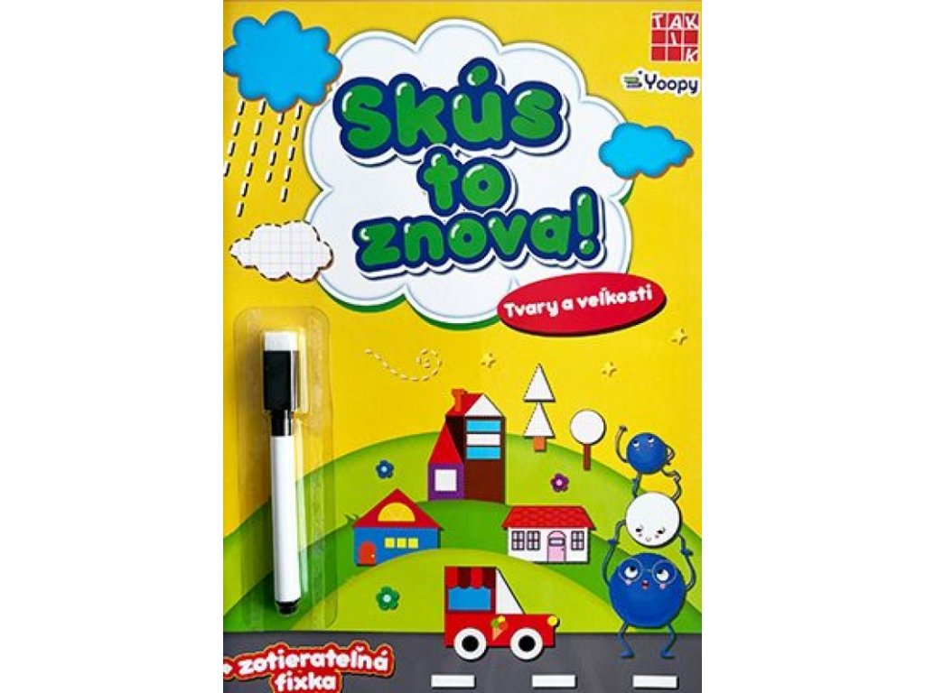Ako vyzerá trojuholník? A ako švorec? Pracovný zošit Skús to znova! – Tvary a veľkosti naučí malých zvedavcov kresliť a rozpoznávať základné geometrické tvary (nápovedu im poskytnú prerušované čiary) aj rozdiel medzi slovami malý – stredný – veľký. Deti sa postupne pripravia na prvé písanie a zároveň si rozvíjajú grafomotorické zručnosti. Súčasťou každého pracovného zošita je špeciálna fixka s hubkou na zmazávanie, vďaka ktorej je možné každú úlohu riešiť znova a znova. Edícia pozostáva z trojice zošitov – Skús to znova – Tvary a veľkosti, Písanie, Čísla a farby, .Dodatočné parametre