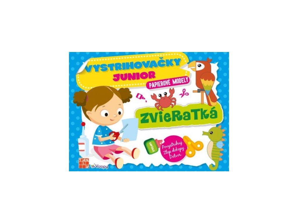Pre šikovné ručičky, ktoré sa učia používať nožničky! Vyskladajte mravčeka, zlatú rybku, hrocha, líšku, sovu či chameleóna vďaka pracovnému zošitu Vystrihovačky junior – Zvieratká. Stačí vytrhnúť/odstrihnúť papierový hárok, vystrihnúť farebné objekty a nalepiť ich na obyčajný papier (odporúčaný formát A4 alebo A3). Hotový obrázok si dieťa môže dotvoriť podľa vlastnej fantázie alebo uvedeného odporúčania (Motýľ: Dokresli, ako lietam medzi kvetinami). Objekty na vystrihnutie majú rôzne rozmery, aby si deti čo najlepšie precvičili pršteky, jemnú motoriku, presnosť, koncentráciu aj trpezlivosť. Po vystrihnutí je dôležité jednotlivé komponenty správne poskladať, čím si malí drobci trénujú logické myslenie. Nalepovaním si zase cibria zmysel pre detail. Samozrejme, že pomocnú ruku k dielu môžu priložiť aj rodičia. Nezabúdajte, že strihanie aj lepenie by sa malo riadiť istou postupnosťou na základe uvedenej predlohy :) Zabávajte sa aj vy s tvorivými vystrihovačkami. V edícii vyšli aj Vystrihovačky junior – Keď vyrastiem.Dodatočné parametre